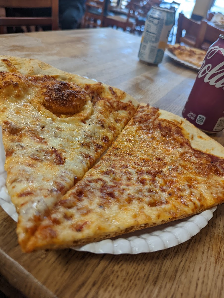 Very good pizza, unlimited refill coke machine, kosher, affordable!